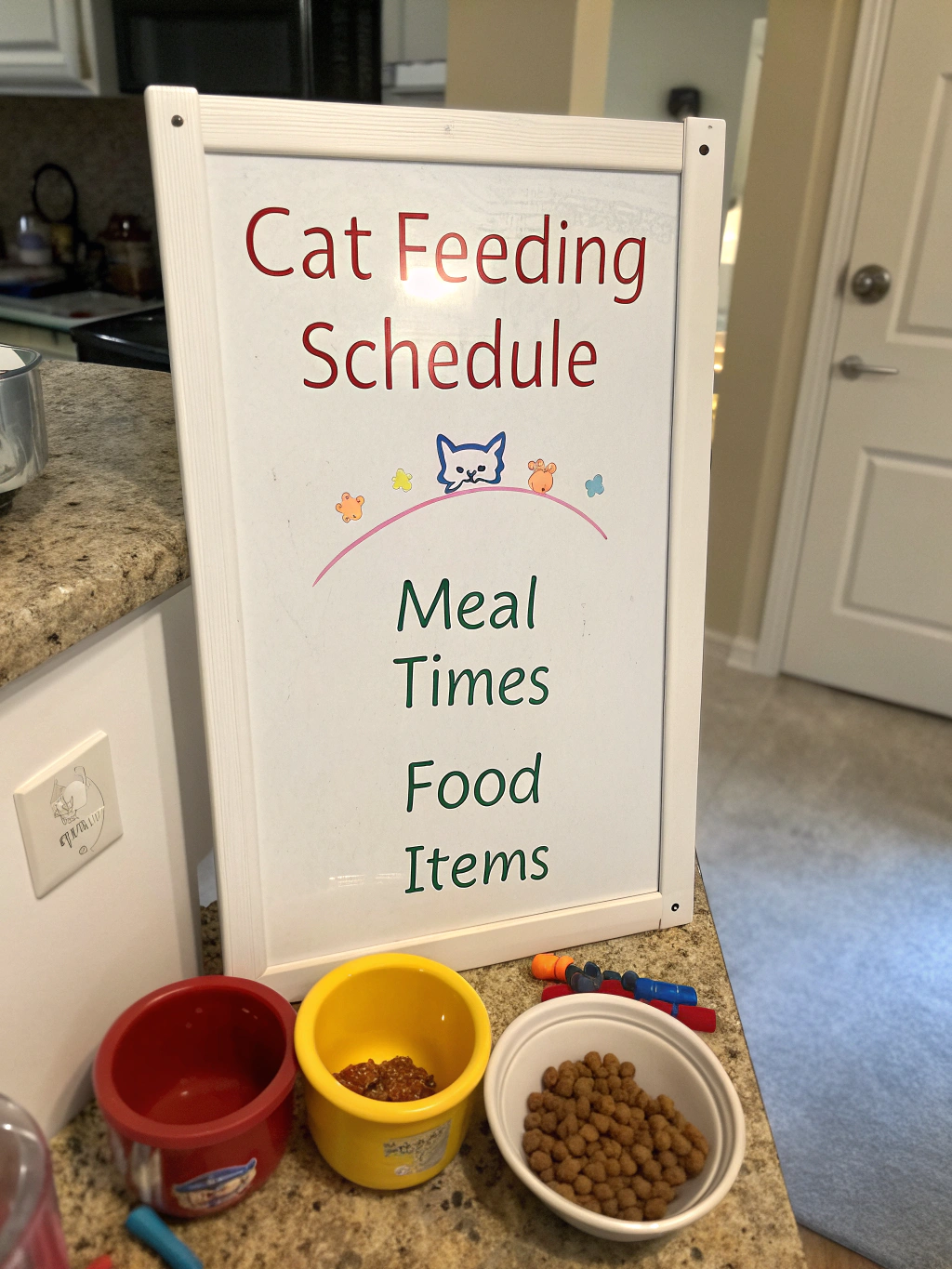 Organization Systems: Create a feeding station with supplies in one location—food, bowls, measuring tools, and treats—for efficient daily routines.